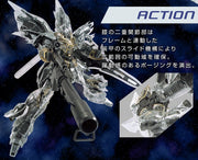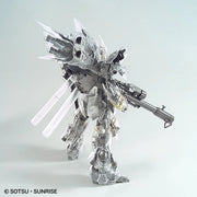 The MG 1/100 Sinanju (Mechanical Clear Edition) is a captivating model kit that showcases the Sinanju mobile suit from "Mobile Suit Gundam Unicorn" with a unique, transparent twist. This Mechanical Clear Edition features clear and translucent parts that expose the detailed inner workings of the Sinanju, allowing builders to admire the complex internal frame and mechanical components that are typically concealed by its striking red armor. The kit retains all the signature features of the Sinanju, including its sleek, imposing design, ornate gold trim, and powerful weaponry like the beam rifle, shield, and beam sabers. The clear parts give the model an elegant, almost ghostly appearance, highlighting the engineering excellence of the Master Grade line while maintaining full articulation for dynamic poses. The MG Sinanju (Mechanical Clear Edition) offers a sophisticated and visually stunning representation of one of the most iconic mobile suits, making it a must-have for fans and collectors who appreciate both the aesthetics and the craftsmanship of Gundam model kits.