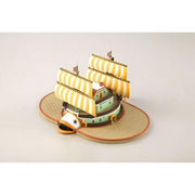 The One Piece Grand Ship Collection Baratie model kit is a charming and detailed replica of the floating restaurant ship from One Piece, known for its unique design and its significance in the early adventures of the Straw Hat Pirates. The model faithfully recreates the Baratie’s distinctive fish-shaped exterior, complete with the large, curved fins and the iconic fish head at the bow, which doubles as the restaurant's main entrance. The vibrant colors and intricate design elements capture the lively atmosphere of the Baratie, making it an eye-catching piece for any One Piece fan.
